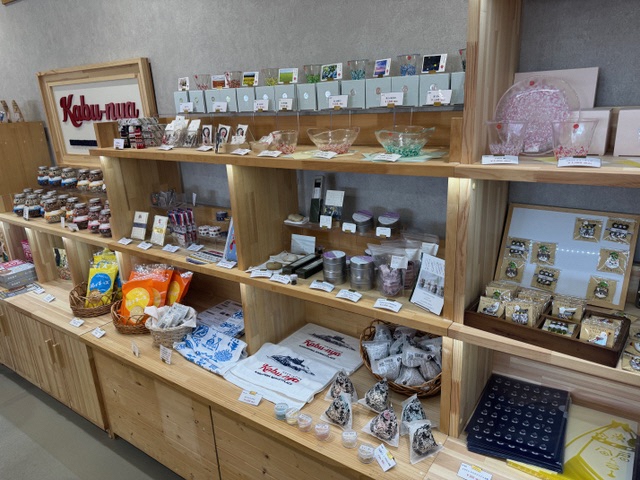 三陸復興国立公園の北の玄関口、蕪島(かぶしま)のすぐそばに位置し、訪れる人々を温かく迎え入れます。店内には、三陸の豊かな海が育んだ鮮度を活かした水産加工品から、郷土の風土を感じさせる特産品やお菓子まで、心ときめく品々が並びます。また、地元の恵みを活かしたジェラードや軽食メニューも提供しています。一望できる窓辺の休憩スペースもご用意しています。
